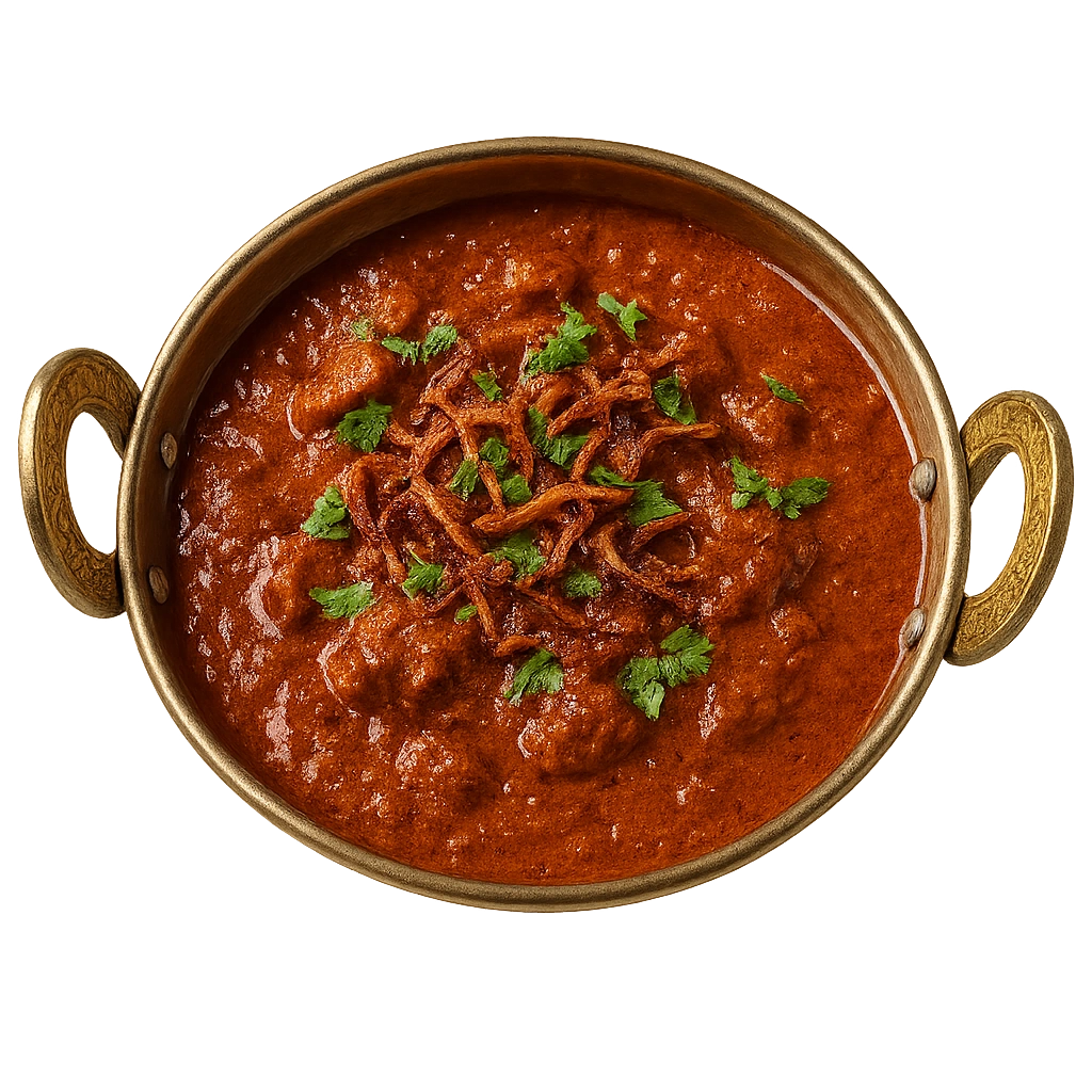 Tender beef cooked in rich, aromatic Rogani spices for a flavorful and hearty experience.