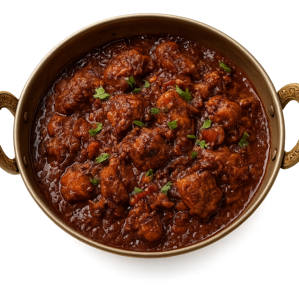 Spicy chicken curry cooked with rich tomatoes, onions, and aromatic Indian spices.