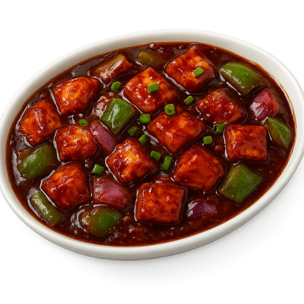 Spicy paneer cubes tossed with colorful bell peppers, onions, and a tangy chili sauce.