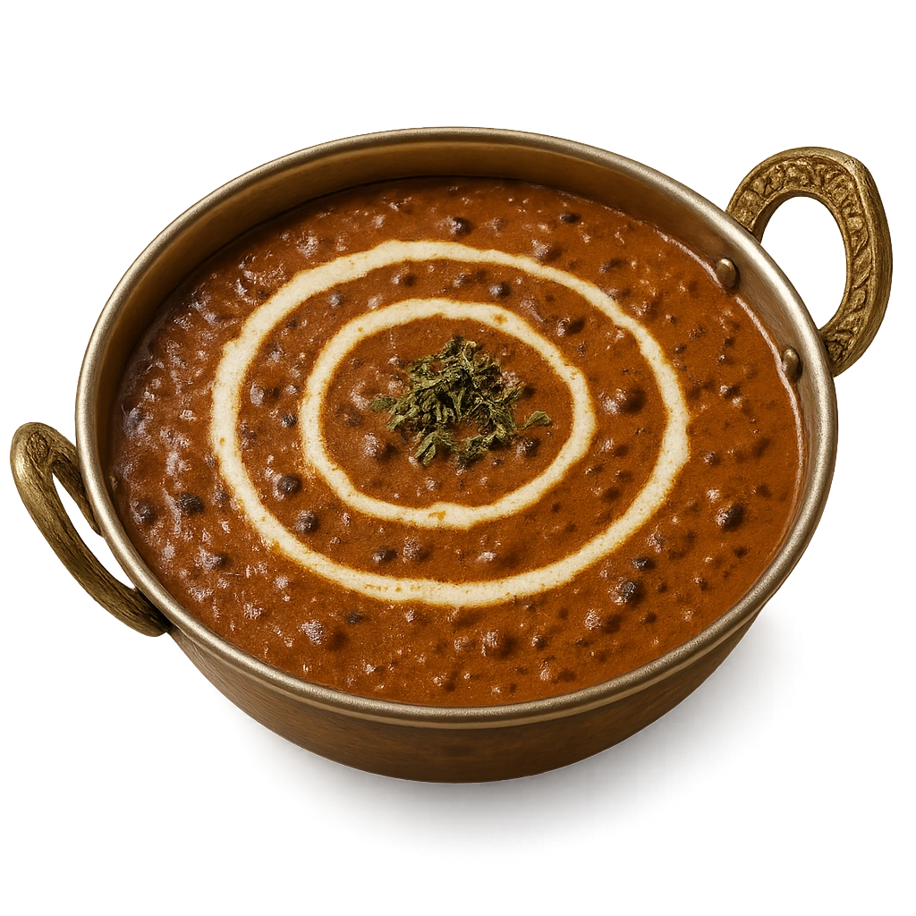 Creamy slow-cooked black lentils simmered with butter, tomatoes, and Indian spices for rich flavor.
