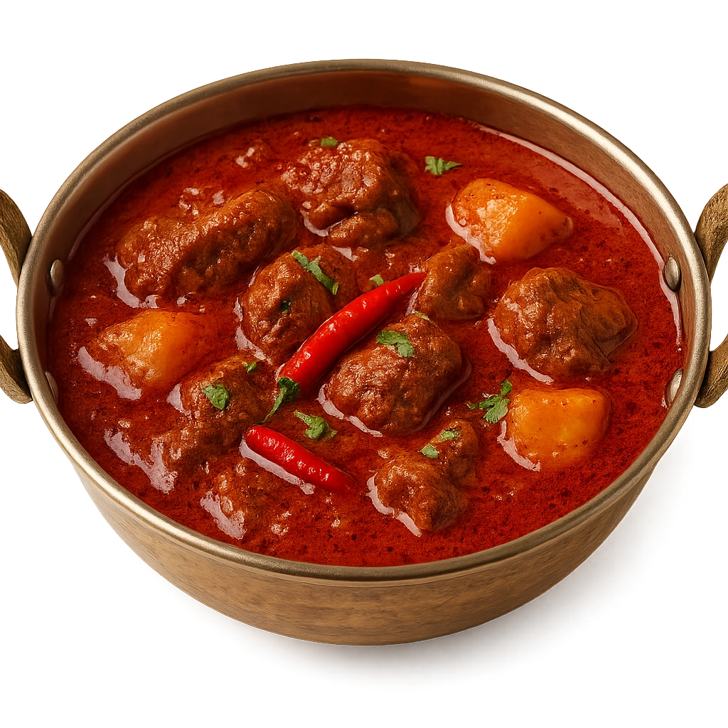 Spicy tender lamb cooked in a tangy, fiery vindaloo sauce with a blend of bold Indian spices.