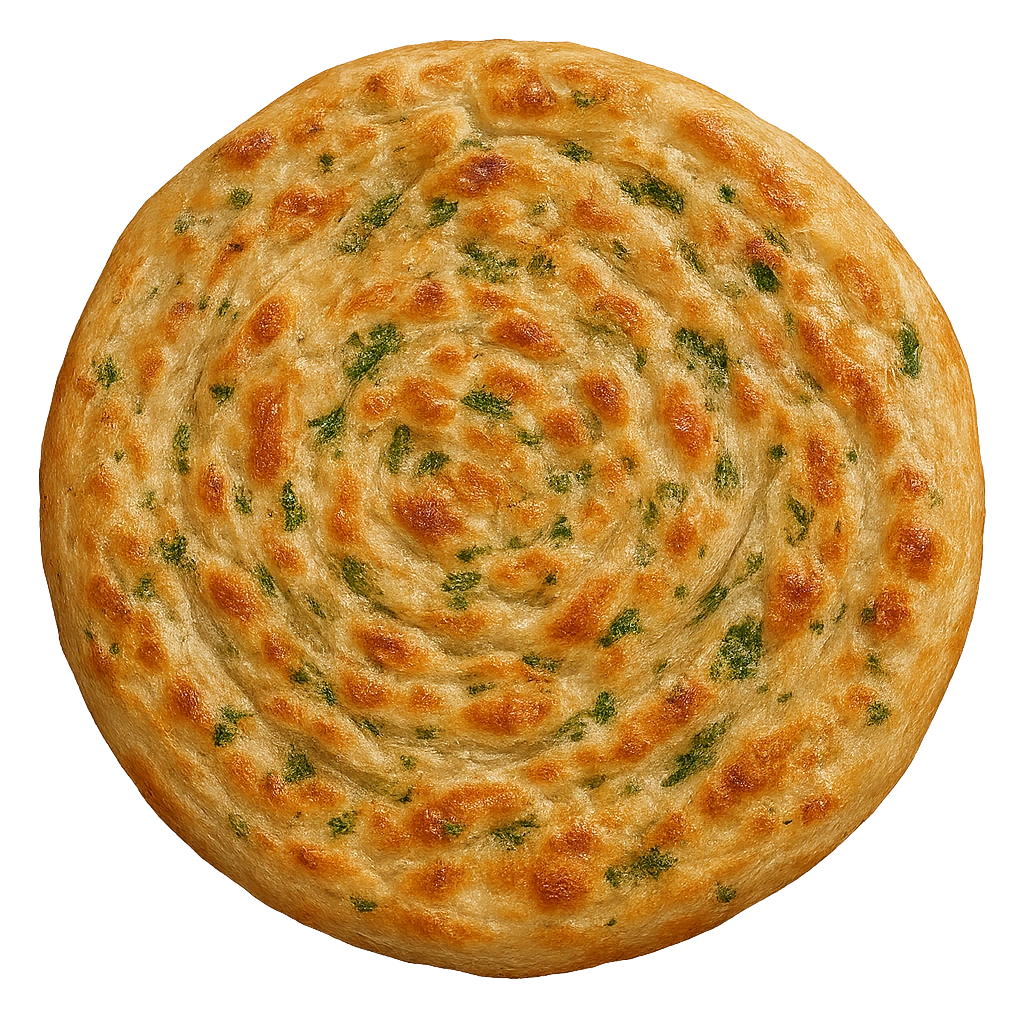 Flaky flatbread infused with fresh mint leaves, offering a refreshing and aromatic flavor in every bite.