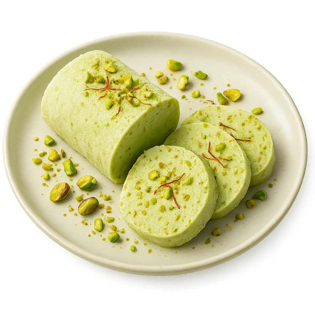 Creamy, traditional Indian pistachio ice cream infused with cardamom and topped with pistachios .