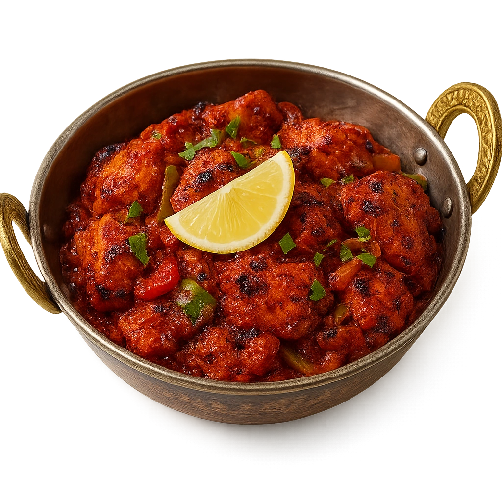 Spiced chicken sautéed with onions, tomatoes, and bell peppers, cooked on a hot tawa for rich flavor.